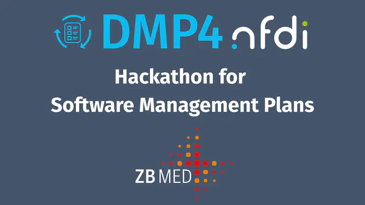 The NFDI Basic Service DMP4NFDI will host a Hackathon for Software Management Plans (SMPs) at ZB MED in Cologne, from 14 April to 16 April 2026. Participants will discuss the importance and relevance of previously identified SMP questions and collaborate to create the first draft of a NFDI SMP template. This template is designed to complement existing work on Data Management Plans (DMPs) and support DMP/SMP interoperability.