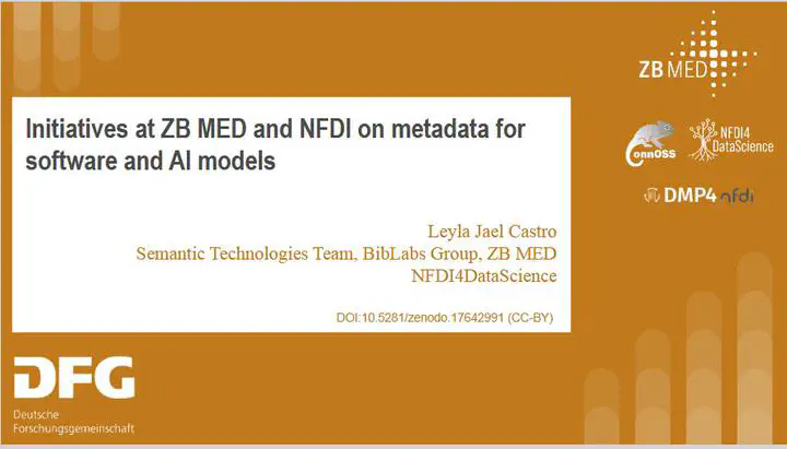 Preview ImageAt the 17th Semantic Web in Libraries Conference (SWIB25), we presented a Lightning Talk on our approach to schema.org-based metadata for software (compatible with Software Management Plans) and AI models. This included tools that make it easier for researchers to share metadata for their own research artifacts.